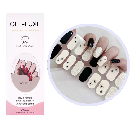 Gel-Luxe Nails in Profi-Qualität. 100% echtes Gel, als Stickerstreifen. 12-frei, ohne HEMA & TPO, vegan & tierversuchsfrei - perfekt für selbstbewusste Looks, die gleichzeitig edel und aufregend wirken.
