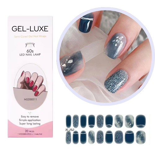 Gel-Luxe Nails in Profi-Qualität. 100% echtes Gel, als Stickerstreifen. 12-frei, ohne HEMA & TPO, vegan & tierversuchsfrei - perfekt für selbstbewusste Looks, die gleichzeitig edel und aufregend wirken.