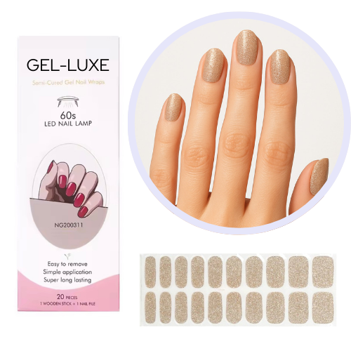 Gel-Luxe Nails in Profi-Qualität. 100% echtes Gel, als Stickerstreifen. 12-frei, ohne HEMA & TPO, vegan & tierversuchsfrei - perfekt für selbstbewusste Looks, die gleichzeitig edel und aufregend wirken.