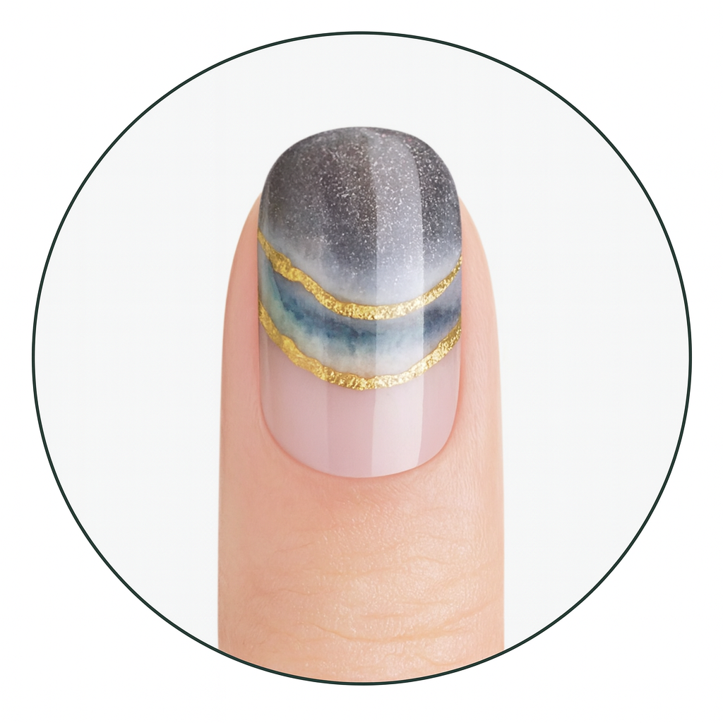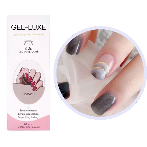 Gel-Luxe Nails in Profi-Qualität. 100% echtes Gel, als Stickerstreifen. 12-frei, ohne HEMA & TPO, vegan & tierversuchsfrei - perfekt für selbstbewusste Looks, die gleichzeitig edel und aufregend wirken.