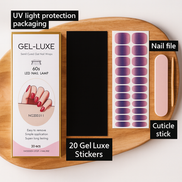 Gel-Luxe Nails in Profi-Qualität. 100% echtes Gel, als Stickerstreifen. 12-frei, ohne HEMA & TPO, vegan & tierversuchsfrei - perfekt für selbstbewusste Looks, die gleichzeitig edel und aufregend wirken.